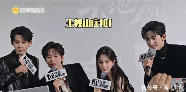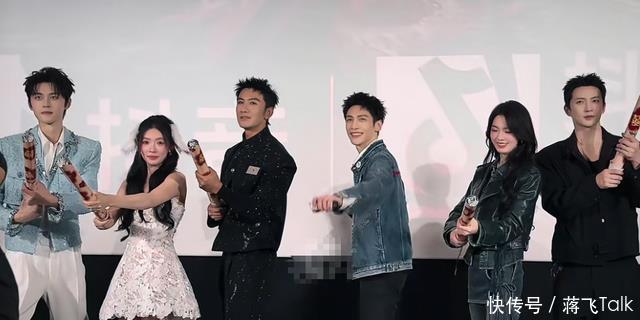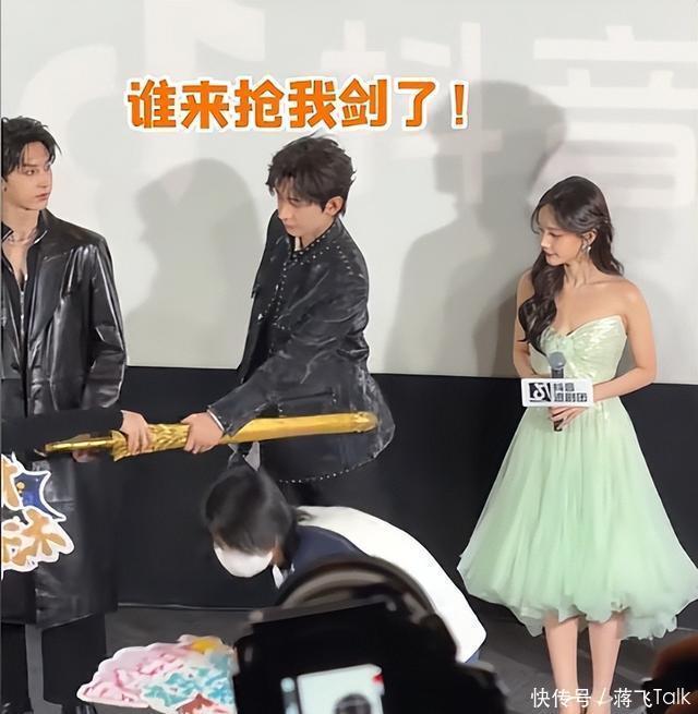 有些尴尬的是,演员们上场的时候还是带着自己剧里的剑来的。 成毅的金元宝是送给台下观众了,但他们的剑却没发挥什么作用。
