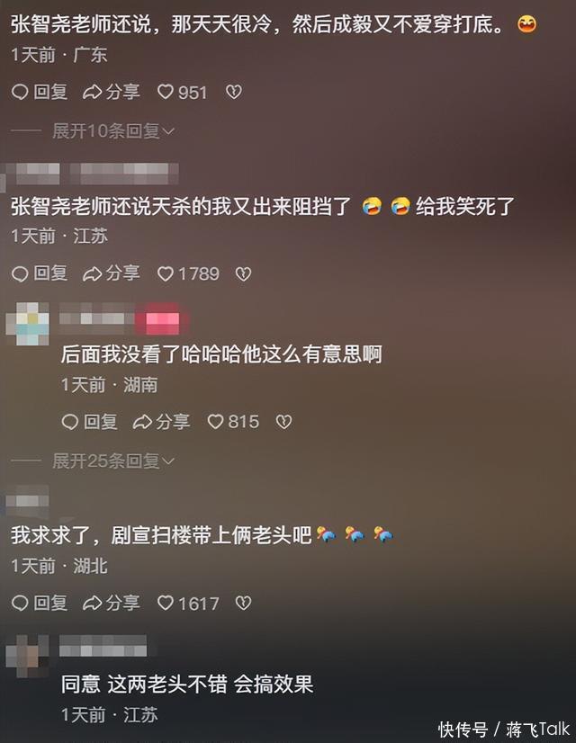 之前直播的时候,剧中两个爹谭凯和张智尧的搞笑程度拉满,被观众请求参加剧宣。 因为他俩实在是又敢说又搞笑。